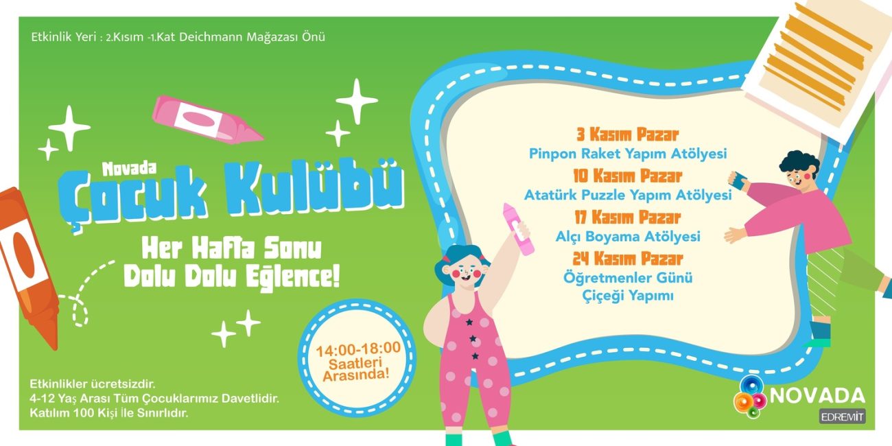 Ufuk ZEYTİNCİ 0 comments Uncategorized Kasım 28, 2024 11 Eyl 2024 EYLÜL AYI ÇOCUK KULÜBÜ ETKİNLİKLERİ DEVAM EDİYOR! Çocuk Kulübü Etkinlikleri Devam Ediyor! ✨Her hafta sonu Novada Edremit’te dolu... Devamını Oku