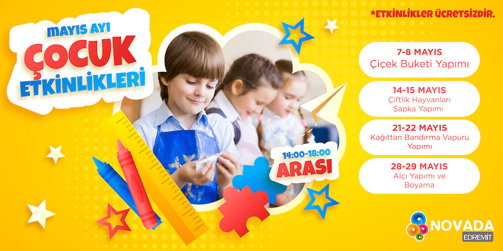 Mayıs 5, 2022 05 May 2022 MAYIS AYI ÇOCUK ETKİNLİKLERİ DEVAM EDİYOR! "Mayıs Ayı Çocuk Etkinlikleri" Söz verdiğimiz gibi #herhaftasonu Novada Edremit’te bir etkinlikte bu... Devamını Oku