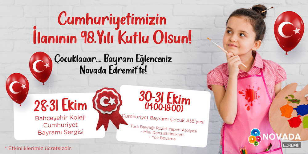 Ekim 26, 2021 26 Eki 2021 BAYRAM EĞLENCESİ NOVADA EDREMİT’TE! Cumhuriyetimizin İlanının 98. Yılı Kutlu Olsun! Çocuklar, bayram eğlenceniz Novada Edremit’te! İş... Devamını Oku
