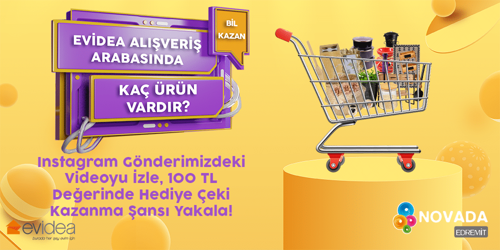 Ağustos 16, 2021 16 Ağu 2021 EVİDEA BİL&KAZAN YARIŞMASI BAŞLADI! #BİLKAZAN EVIDEA ALIŞVERİŞ ARABASINDA KAÇ ÜRÜN VARDIR? Novada Edremit instagram hesabında ki gönderi... Devamını Oku