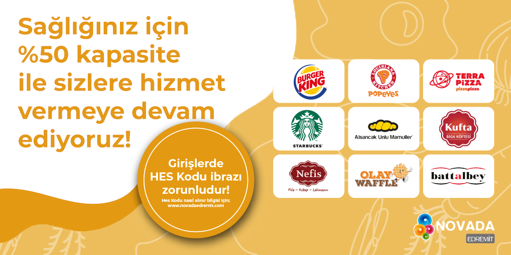 Nisan 1, 2021 01 Nis 2021 Sağlığınız İçin %50 Kapasite İle Sizlere Hizmet Vermeye Devam Ediyoruz! Girişlerde HES kodu ibrazı zorunludur. Anlayışınız için teşekkür ederiz. Afiyet olsun.. Devamını Oku