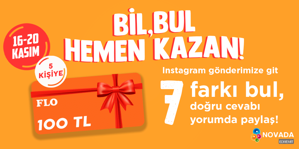 Kasım 16, 2020 16 Kas 2020 BİL, BUL, HEMEN KAZAN! NOVADA'DA KASIM AYI SÜRPRİZLERi! ⠀⠀ ⠀ BİL, BUL HEMEN KAZAN!⠀ ⠀ Görseli yana kaydır - 7 farkı bul v... Devamını Oku