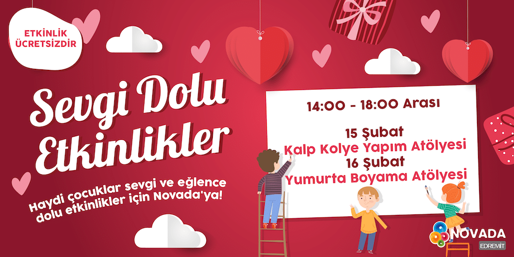 Şubat 14, 2020 14 Şub 2020 SEVGİ VE EĞLENCE DOLU ETKİNLİKLER İÇİN NOVADA EDREMİT! Sevgi ve eğlence dolu etkinlikler için Novada Edremit! ⠀ 14:00 – 18:00 saatleri arasında⠀ 15 Şubat: ... Devamını Oku