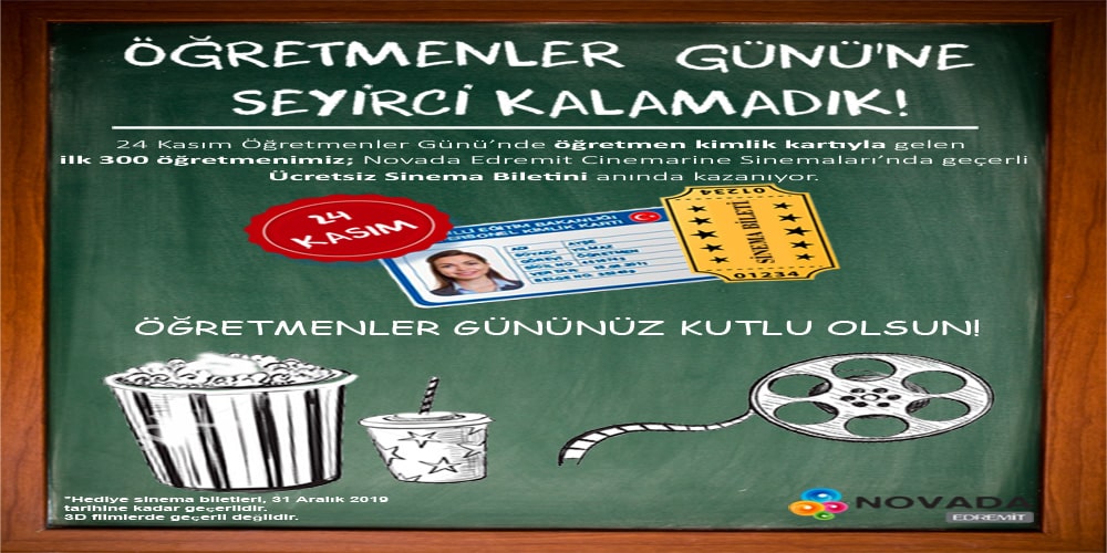 Kasım 24, 2019 24 Kas 2019 ÖĞRETMENLER GÜNÜ’NE SEYİRCİ KALAMADIK! 24 Kasım Ögretmenler Günü'nde öğretmen kimlik kartıyla Novada Edremit'e gelen ilk 300 öğretmenimize ... Devamını Oku