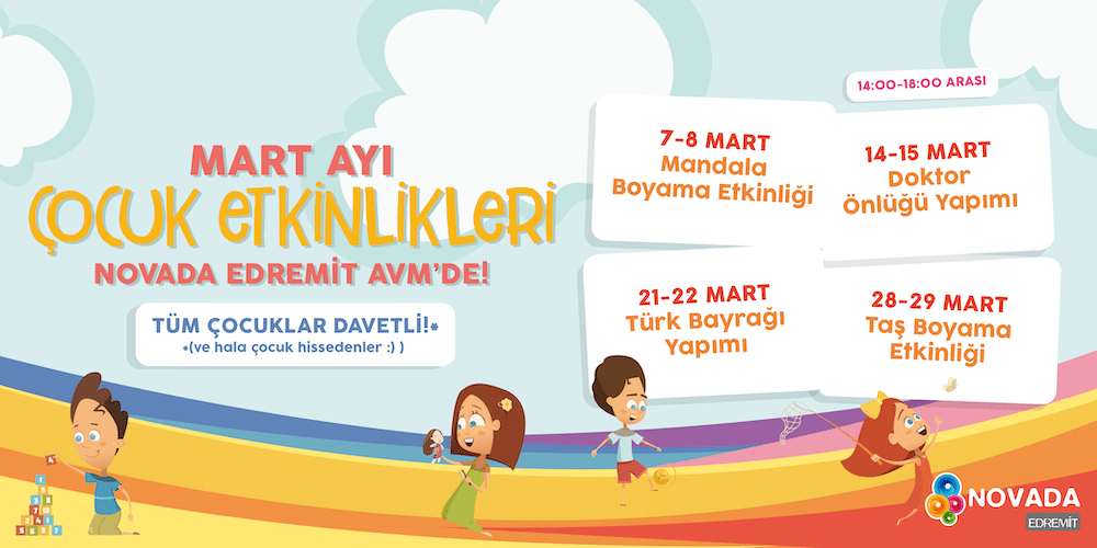 Mart 1, 2020 01 Mar 2020 MART AYI ÇOCUK ETKİNLİKLERİ! Novada Edremit'te Mart Ayı çocuklar için eğlence dolu! Her hafta sonu gerçekleştirilecek etkinlikler... Devamını Oku