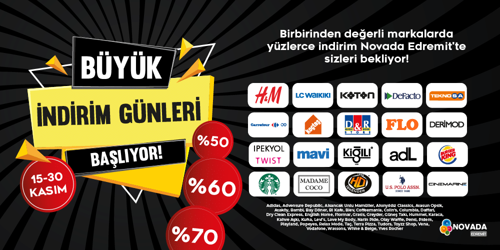 Kasım 16, 2019 16 Kas 2019 BÜYÜK İNDİRİM GÜNLERİ NOVADA EDREMİT’TE! 15 – 30 Kasım tarihleri arasında birçok markada yüzlerce indirim Novada Edremit’te! Devamını Oku