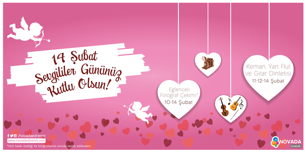 Nisan 25, 2017 25 Nis 2017 14 ŞUBAT SEVGİLİLER GÜNÜNÜZ KUTLU OLSUN! 10-14 Şubat tarihleri arasında fotoğraf çekimi ile 11-12-14 Şubat tarihlerinde keman, flüt ve yan gi... Devamını Oku