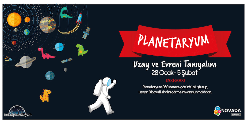 Nisan 25, 2017 25 Nis 2017 3 BOYUTLU UZAY GEZİSİ NOVADA’DA! Çocukları uzay ve evren ile buluşturan Planetaryum etkinliği Novada’da! 360 derece görüntü eşliğinde... Devamını Oku
