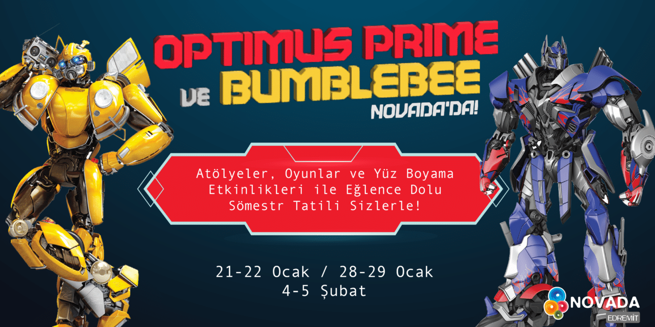 Ocak 18, 2023 18 Oca 2023 TRANSFORMERS NOVADA EDREMİT’TE! Sömestr tatili boyunca her hafta sonu Optimus Prime ve Bumblebee ile birlikte Novada'dayız! Robotl... Devamını Oku