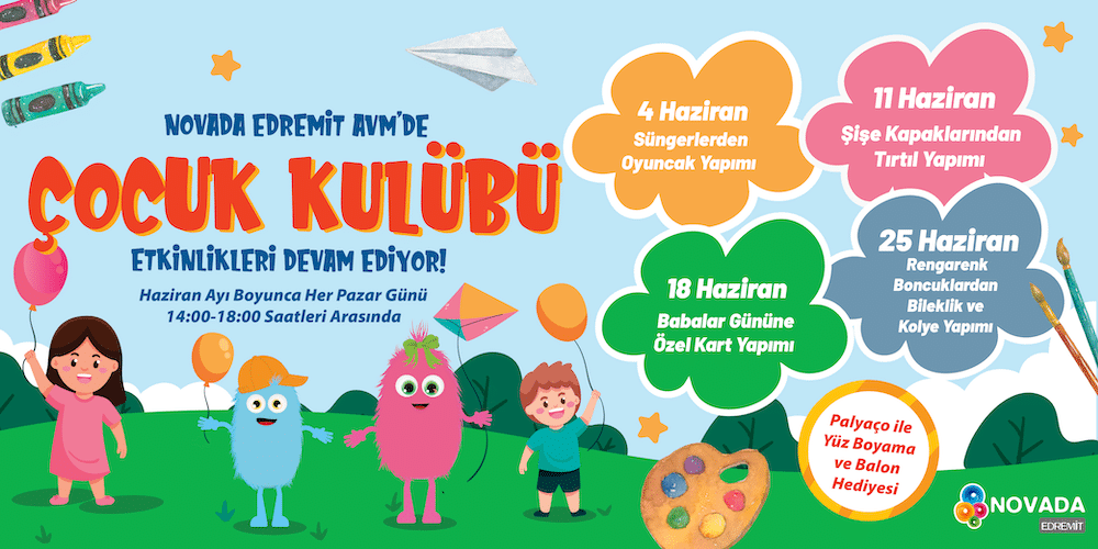 Haziran 14, 2023 14 Haz 2023 NOVADA ÇOCUK KULÜBÜ HAZİRAN AYI ETKİNLİKLERİ İLE DEVAM EDİYOR! Çocuk Kulübü Etkinlikleri Devam Ediyor! ✨ Haziran ayı boyunca “her pazar” Novada Edremit sizleri bek... Devamını Oku